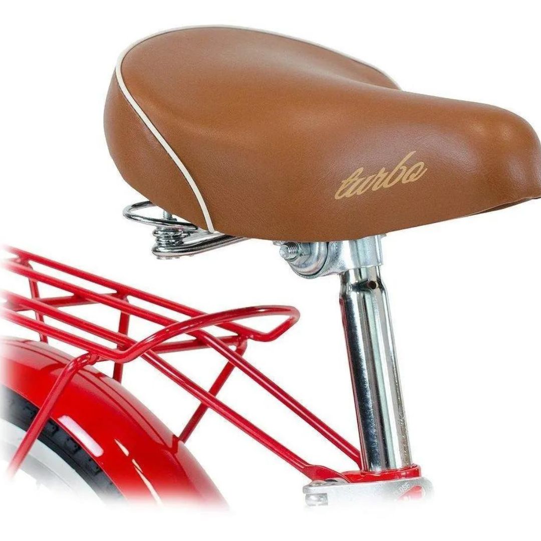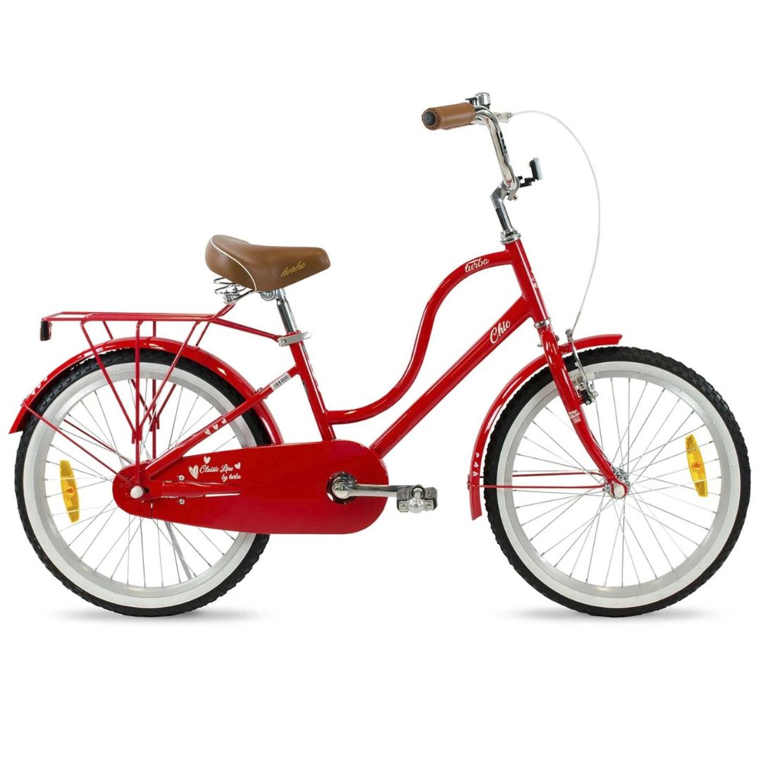 La Bicicleta Turbo Chic color rojo es una increíble bicicleta para esos paseos de ciudad, cómodos y divertidos para pasear con tu familia y amigos. Su cuadro comfort retro girl design ayudará que en todo momento conserves una postura cómoda y relajada al rodar. Cuenta con una geometria baja para facil acceso. Su rodada 20 será una rodada eféctiva para que en todo momento mantengas el control y estabilidad en el terreno. Cuenta con una velocidad y frenos contra pedal/ del tipo "v" de alta seguridad, los cuales permitirán que en todo momento permanezcas segura y te diviertas al rodar. Suave y amplio asiento con resortes para siempre conservar la comodidad y comfort. La bicicleta Turbo Chic viene equipada con: salpicaderas, campanilla, portabulto y parador lateral.