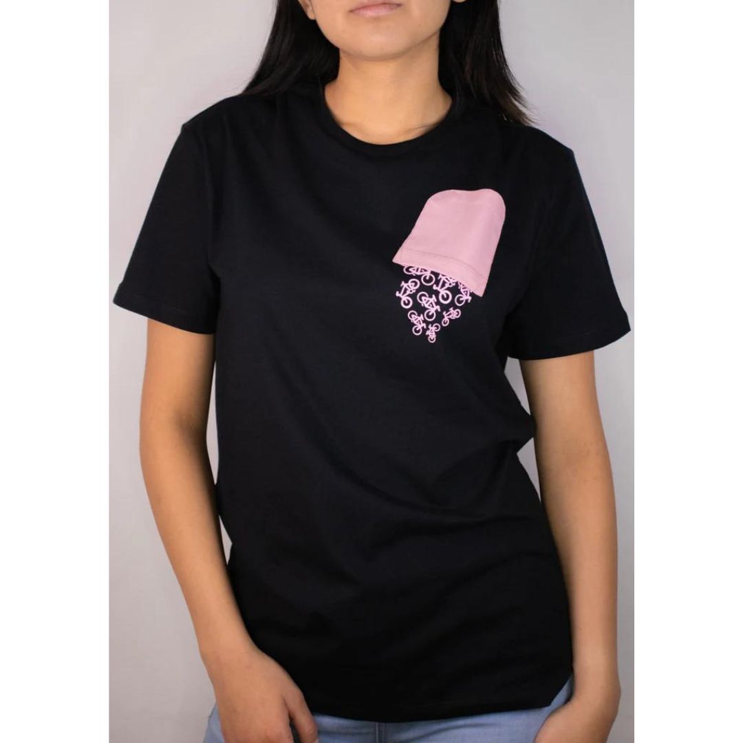 Un diseño que reta a todas las cosas comunes que conoces, manteniendo una imagen elegante, alegre y moderna. Con una bolsa y estructura delicadamente confeccionada, Falling in bike dará como resultado una prenda con un tacto muy suave y ligero. Enalteciendo la pasión por la bicicleta que se derrocha hasta el alma.